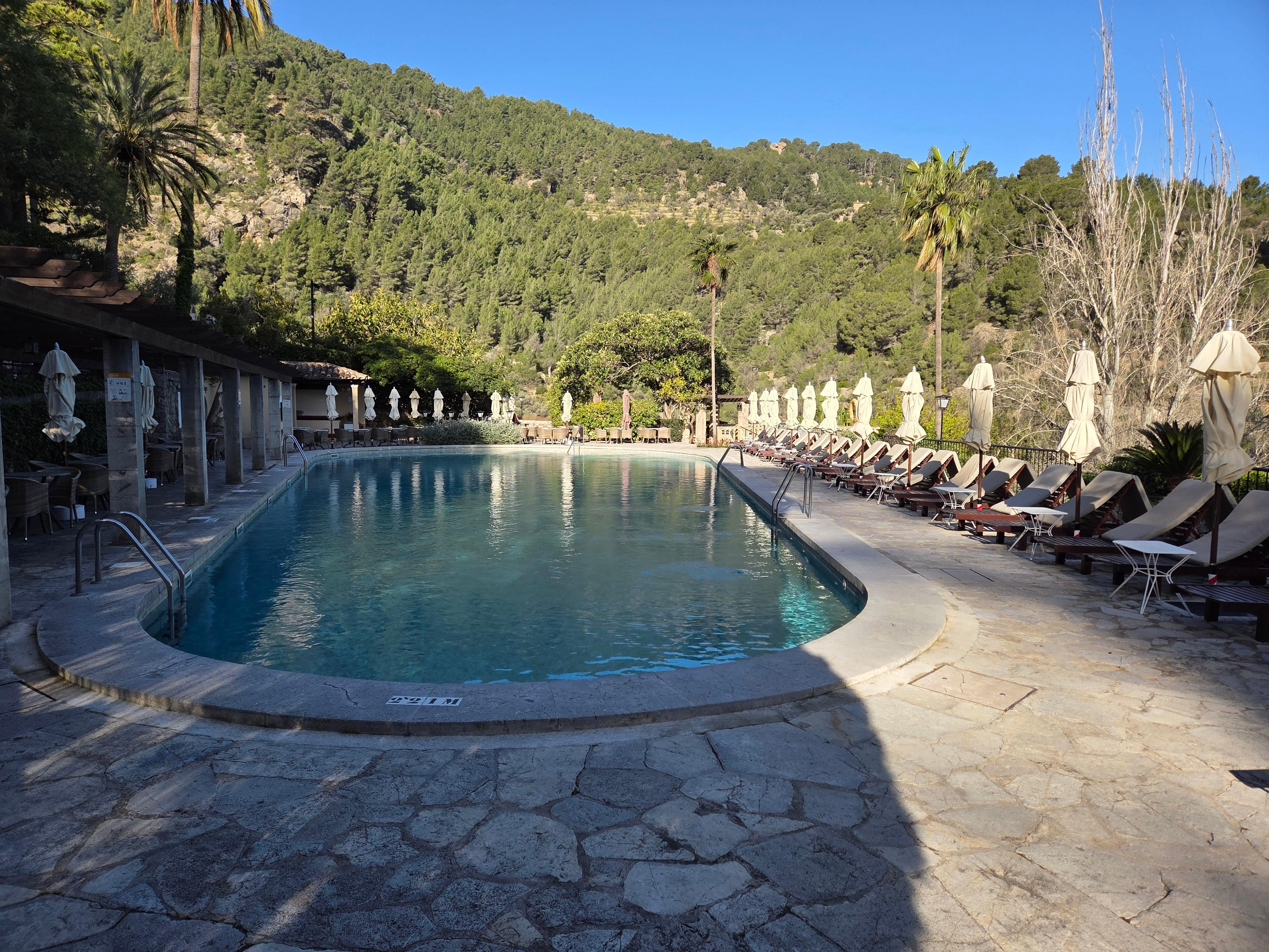 Overall the hotel is nice - the pool is as pictured, lots of seating near it and around the garden which is lovely. We enjoyed the private beach, which was beautiful and close to the property, with a free shuttle. Breakfast was a nice perk and food was good for value. Easy walking to Deia, for dinner reservations in town.