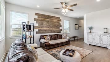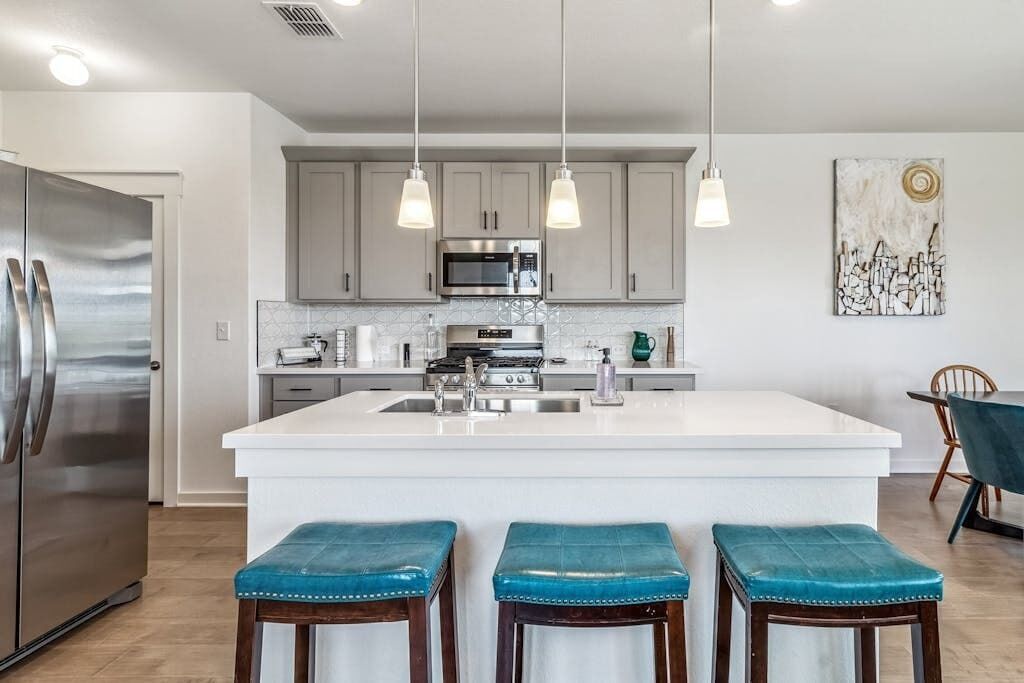 Lux 3bd, Game room with 85" TV, gym, firepit, Minutes to Tesla, COTA, Airport