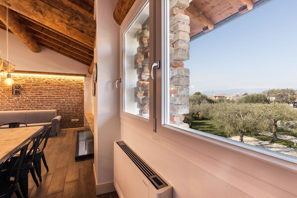 Nel sud del Lago di Garda la tradizione incontra la modernità. Questo spazioso appartamento per vacanze fa parte di un complesso residenziale di 12 unità nella tranquilla località di Desenzano del Garda, a meno di un chilometro dal Lago di Garda. Con 3 camere da letto, la proprietà può ospitare fino a 7 persone per un piacevole soggiorno. L'appartamento è composto da una camera con letto matrimoniale, una camera con 2 letti singoli e una piccola mansarda con un altro letto singolo. Nella cucina-soggiorno si trova un altro divano letto per 2 persone e un bagno. Tra i servizi aggiuntivi figurano l'aria condizionata e la connessione Wi-Fi. Nell'ampio giardino di Villa dei Colli Storici, con i suoi ulivi secolari, c'è anche una piscina in comune (aperta da giugno a ottobre) e comode sedie a sdraio. Il ristorante più vicino dista solo 4 minuti a piedi (300 m), mentre il supermercato più vicino si trova a 4 minuti di auto (2,2 km). La spiaggia, La Zettera, dista 1,1 km dalla casa vacanze (15 minuti a piedi).