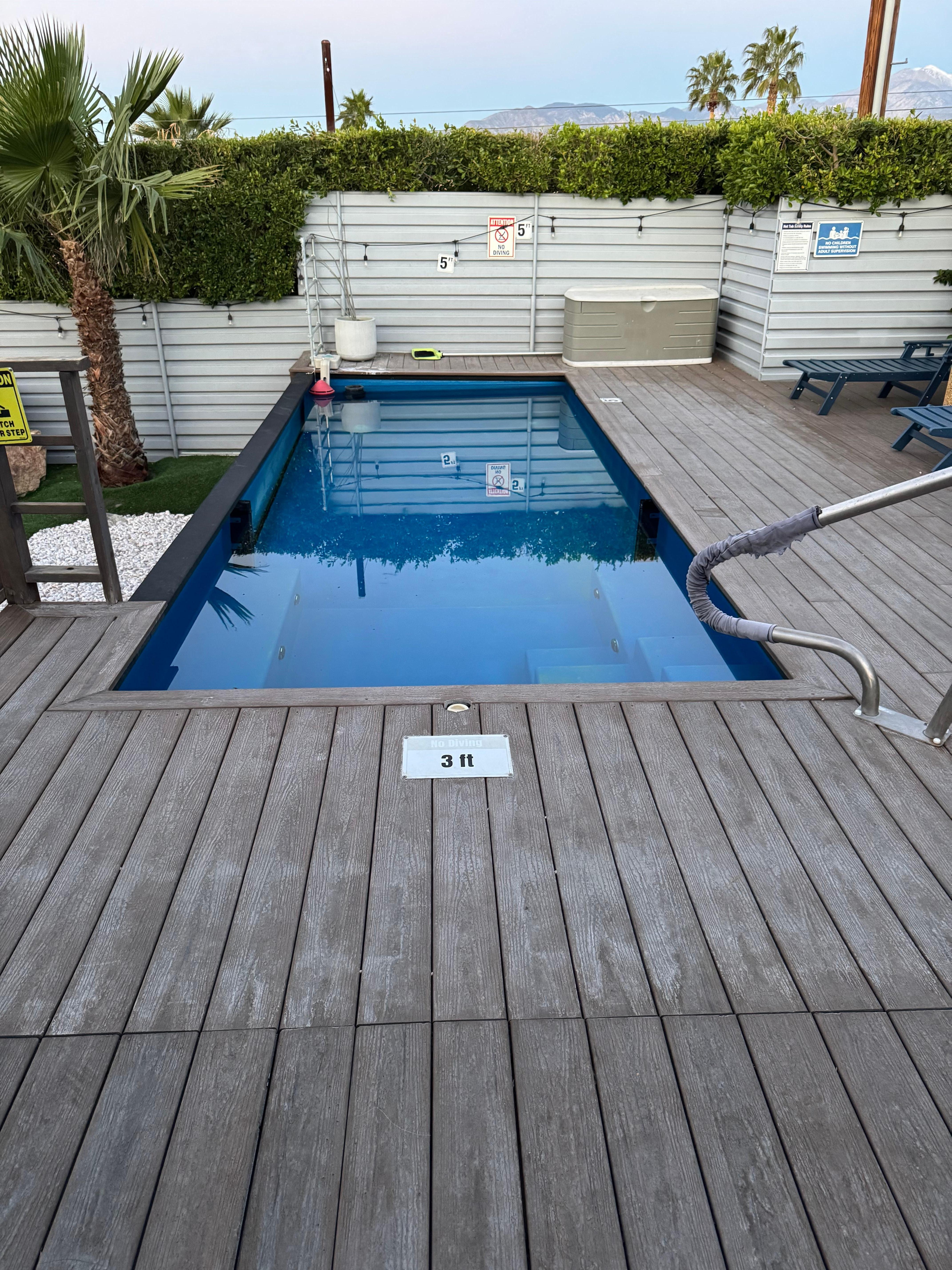 Hot Tub is built into the pool. Pool section is 5 ft deep. Combined smart pool/spa is 8 ft wide x 20 ft long. Pool heat & lights are controlled by guest upon arrival.