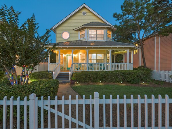 Dall'architettura da spiaggia al cottage con il suo rivestimento giallo al ponte della piscina illuminata dal sole nel cortile sul retro, Walking on Sunshine è classicamente in Florida! Passeggiate giornaliere verso la spiaggia a un isolato di distanza sotto le palme ... ascoltando musica con una bibita fresca dall'ombra della veranda sul retro proiettata ... dondolando sul portico davanti a guardare le famiglie felici salutare - questa è la roba che le vacanze di Destin sono fatto di.