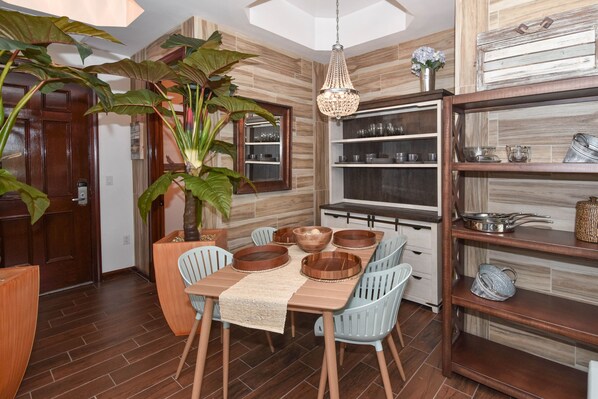 La zona giorno ha molti posti a sedere per la famiglia. Le finestre dal pavimento al soffitto e le porte scorrevoli in vetro offrono un facile accesso all'ampio spazio del patio e alla grande piscina laguna del resort. La zona giorno dispone anche di un divano letto matrimoniale per ospitare gruppi più numerosi.