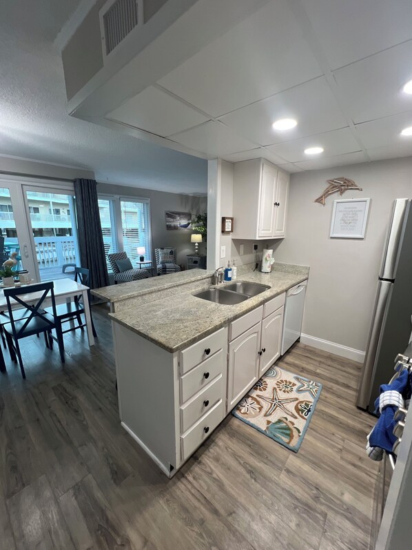 First floor ONE bedroom condo at Sandpiper Cove located a few minutes walk from private beach. Space includes King bed and sleeper sofa.