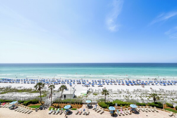 L'enorme, arredato, balcone Golfo di fronte a Silver Beach Towers occidentale 601 offre una vista spettacolare sulle acque color smeraldo e sabbie di zucchero bianco del Golfo del Messico! Le acque scintillanti pu������� essere visto da tutto il open-space Area living cos������ come la camera da letto del Golfo-front attraverso le finestre dal pavimento al soffitto e porte scorrevoli in vetro. Sia la zona giorno e camera da letto principale anche entrambi hanno accesso al balcone. Ci sono due camere da letto in questo condominio che hanno accesso privato al balcone esposto a nord che si affaccia sulla zona di Greater Destin. La zona giorno e tutte le camere sono dotate di TV a schermo piatto, e in camera accesso ad una delle tre bagni della casa.