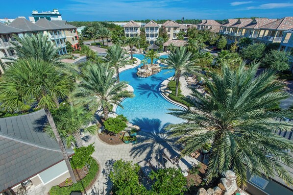 ★ Resort-Style Pool: Enjoy a 33,000 sq/ft heated lagoon-style pool featuring zero edge-entry, cascading waterfalls, lush landscaping, and a relaxing hot tub for the ultimate vacation. Pool heated from 3/1-4/26, and the week Thanksgiving, Christmas, & New Years. Pool is only 350 ft (1 minute walk) away.
