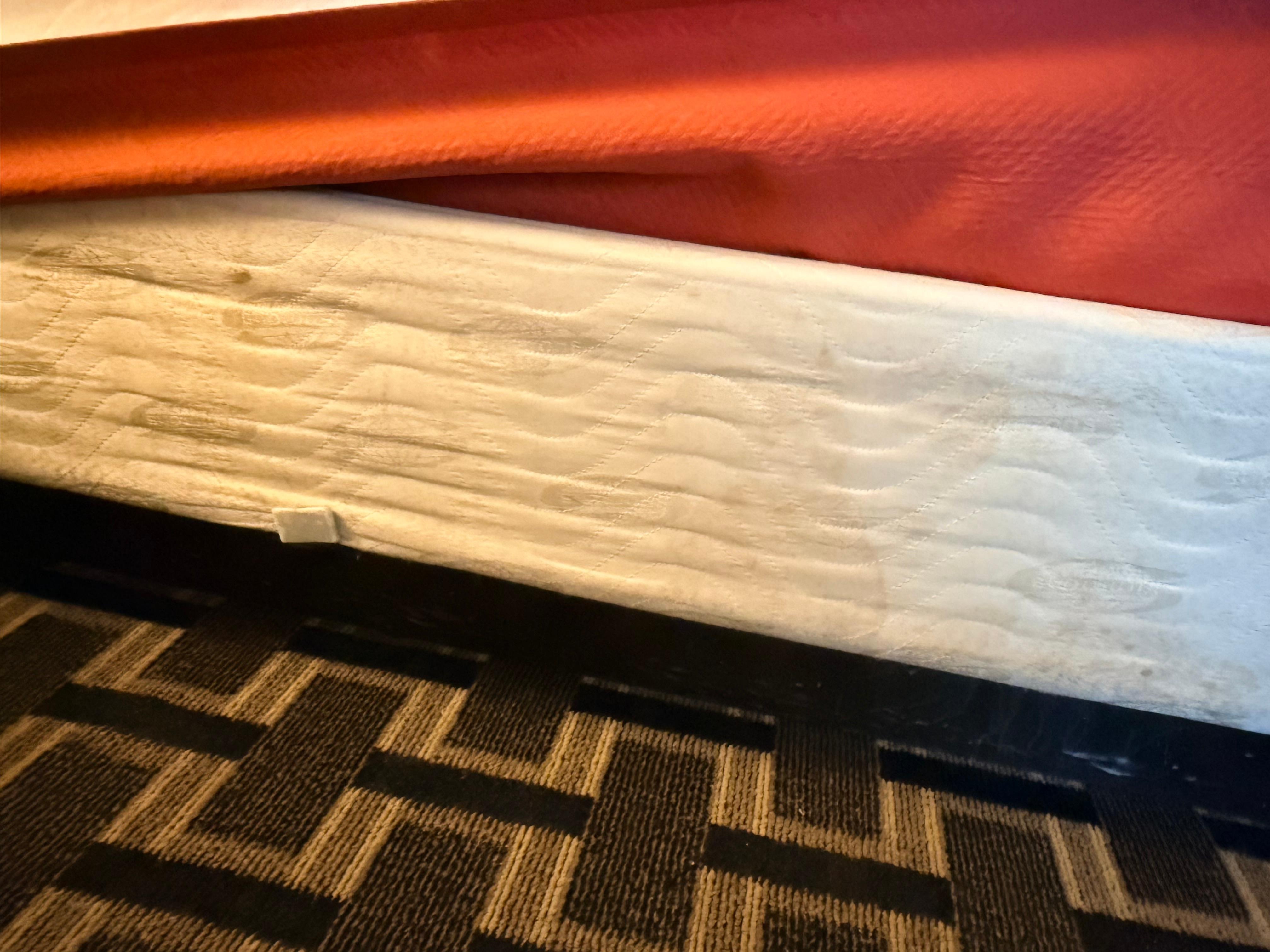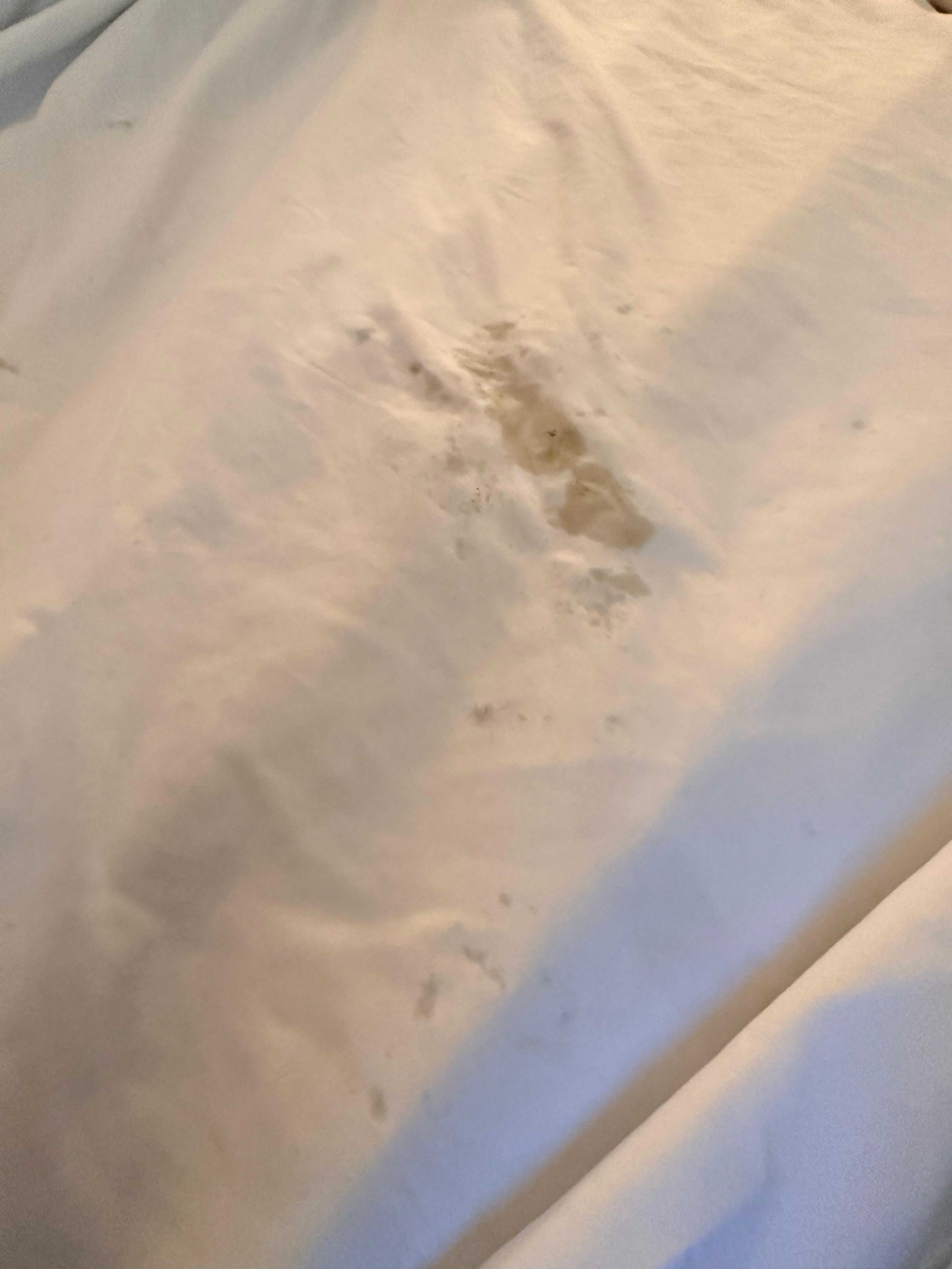 Everything is stained, the bed, the sheets and the pillows. There were stains on the wall and the lampshades. The TV had a huge scratch on the front of it. The chair had pen marks all over it. The window, half of it was plexiglass that was screwed on with screws. There were no extras, no amenities, I didn’t even have a towel. I had to go down to the desk and ask for one because there’s no phone in the room. Before I got there, I was not able to get a hold of anybody on the phone. I have asked for a refund and Expedia couldn’t even get a hold of them. The faucet was very loose. The vent in the bathroom was hanging off. I went to the restroom in the middle of the night and there was a cockroach. Also patches on the wall that weren’t painted and cracks in the corners along with missing molding along the ceiling. I turned on the heater and it smelled like it was burning, and there was a sheet on the bed as a comforter.