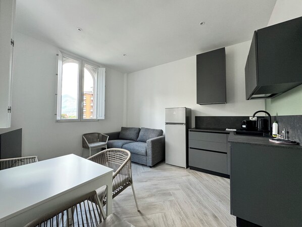 L’alloggio è composto da una luminosa camera matrimoniale, un ampio soggiorno con angolo cottura completamente attrezzato e divano letto doppio, bagno moderno e un grazioso balcone dove godersi momenti di relax all’aperto.