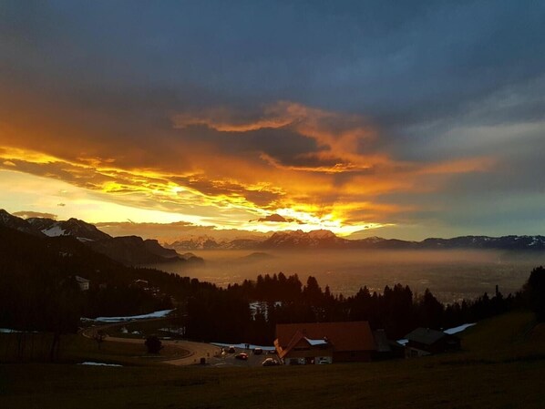 Godetevi la splendida vista sulle montagne e il panorama sulla valle del Reno dal balcone privato.