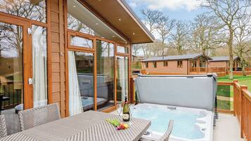 Chalet scandinavo con vasca idromassaggio nelle zone rurali del Dorset settentrionale. Vedute spettacolari.
