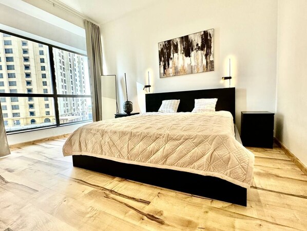 The apartment is located next to the JBR beach, tram, and The JBR Beach shopping mall with proximity to key areas of Dubai, metro, shopping, leisure, and business areas.