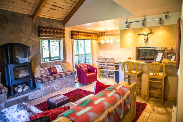 La posizione non è tutto però! Questa unità di quattro camere da letto può ospitare comodamente due famiglie complete - ed è l'ambiente perfetto per serate divertenti con la famiglia e gli amici. Con una cucina completa, una stufa a legna e servizi interni aggiornati, vivrai nel lusso per l'intero soggiorno!