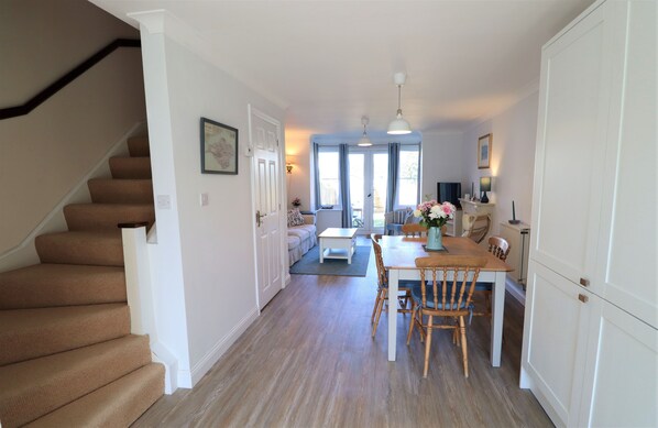 28 Anchorage Way has views across the River Medina to East Cowes Marina. The house is comfortably furnished offering two, double bedrooms, one with king bed and one with twin beds and family bathroom with shower over bath on the first floor. The open plan kitchen / diner / lounge has ample seating with French doors leading to the enclosed garden with outside seating. The house also benefits from driveway to the rear.