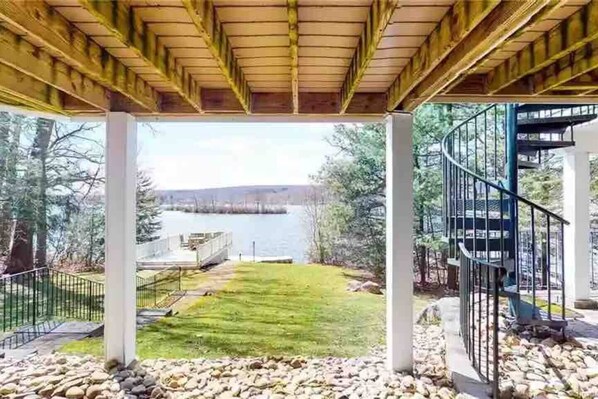 Owner/ neighbors were very welcoming and attentive. Game room was a big hit for teens in all kinds of weather. House had flexible space for all eight of us. Lots of water activities such as rowboat, kayak, water slides and tubes. Nice views from both decks but could have used a quick power wash on the lower deck. Overall it was a relaxing enjoyable stay and we highly recommend it.