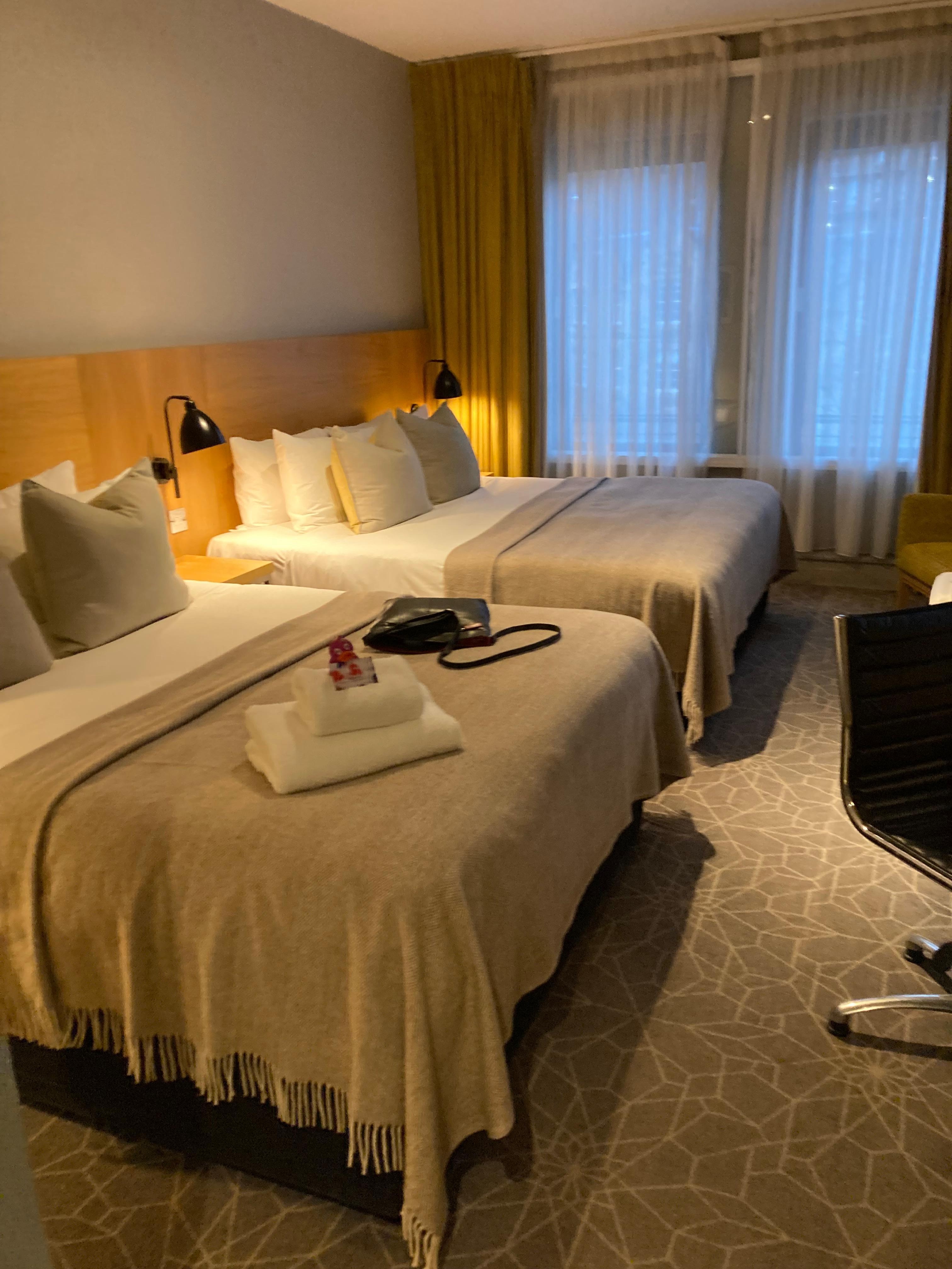 I have stayed for a few days in this hotel I found the rooms big a very clean ,I must say the rooms need draw space there is none to put your undies and socks ? I traveled for leisure that’s the only problem location great