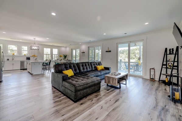 Head on back home after you've discovered enough of the coastline and relax with your feet up in the living area, complete with cozy furnishings, a coffee table, and a TV. If you and your group get hungry, look no further than the gas grill for some classic American barbecue. Then, kick it up on the balcony and enjoy the cool breeze of the air along with the splendid view of the water below. There's never been a better time to visit South Carolina!