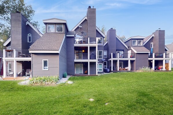 For a relaxed dining experience, ignite the wood pellet Traeger grill on the covered balcony and enjoy a charming cookout. Have your meal outdoors with a view of the Eagle River, providing partial mountain vistas for a truly calming atmosphere.