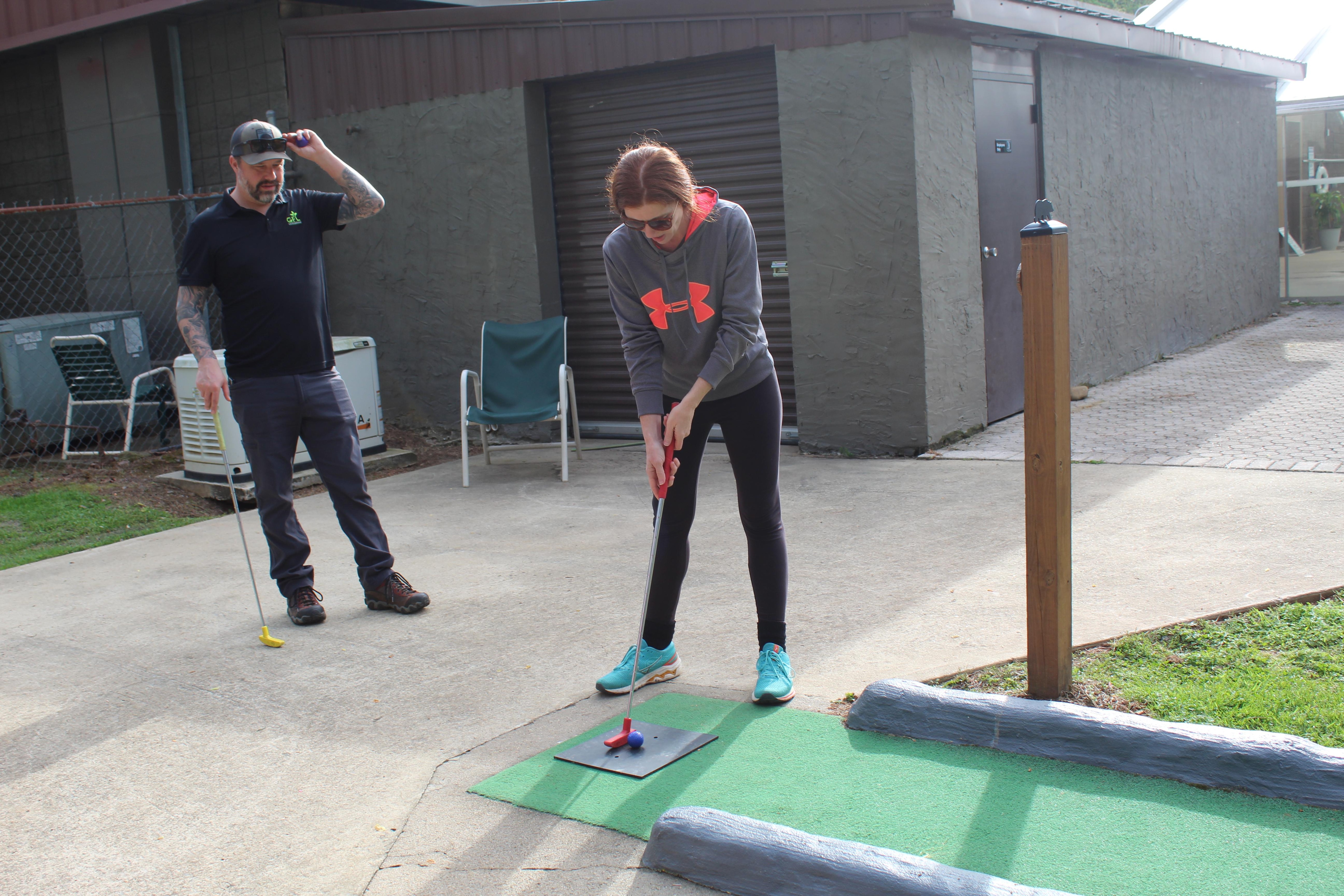 The Recreation Center also has other outside attractions, which include tennis, basketball, and pickleball courts, plus an 18-hole miniature golf course. The equipment can be checked out at the Recreation Center desk.