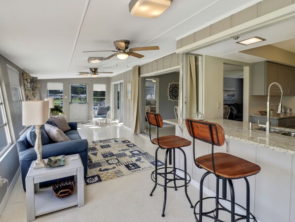 Serenity Retreat was completely renovated from top to bottom with brand new floors, kitchen, bathrooms, lighting, wall colors and décor to ignite your peace of mind, laid back intentions and dream of RELAXING in a coastal beach environment created for Serenity. In the quiet friendly residential neighborhood yet close to everything! We provide some beach chairs for beach days and a kayak for our guests to explore the waterway, please use them responsibly. Once you come, you'll return year after year!