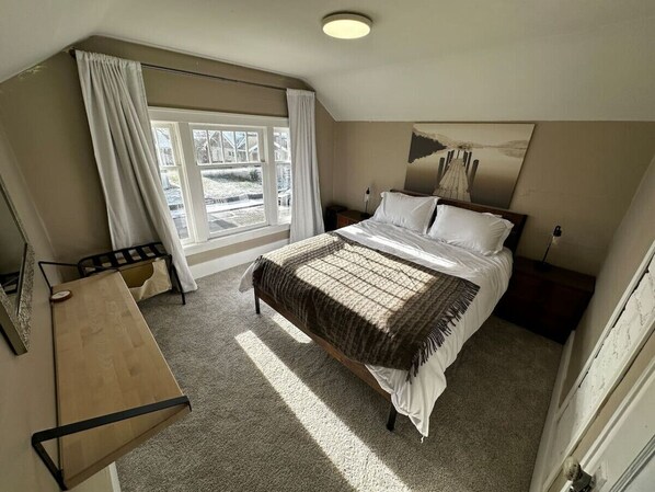 Upstairs, you’ll find two cozy bedrooms including a sleeping loft — each room features blackout curtains so you can sleep in or nap like a pro. Need a recharge? Head out to the covered country-style front porch for morning coffee with sweeping mountain views, or soak in the epic private hot tub out back under the stars.