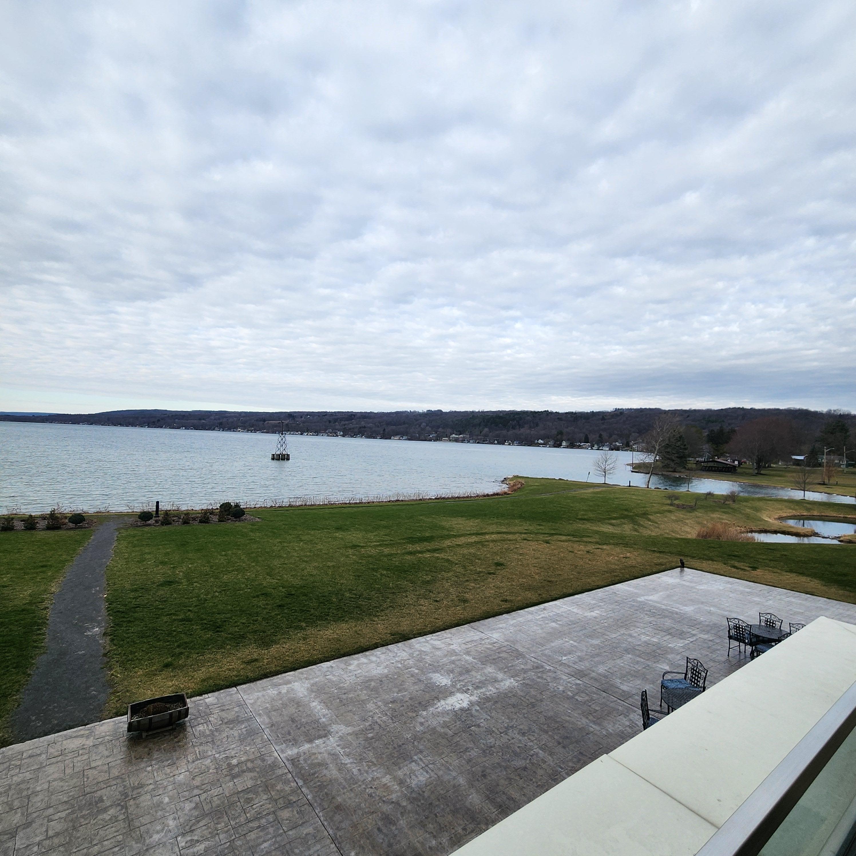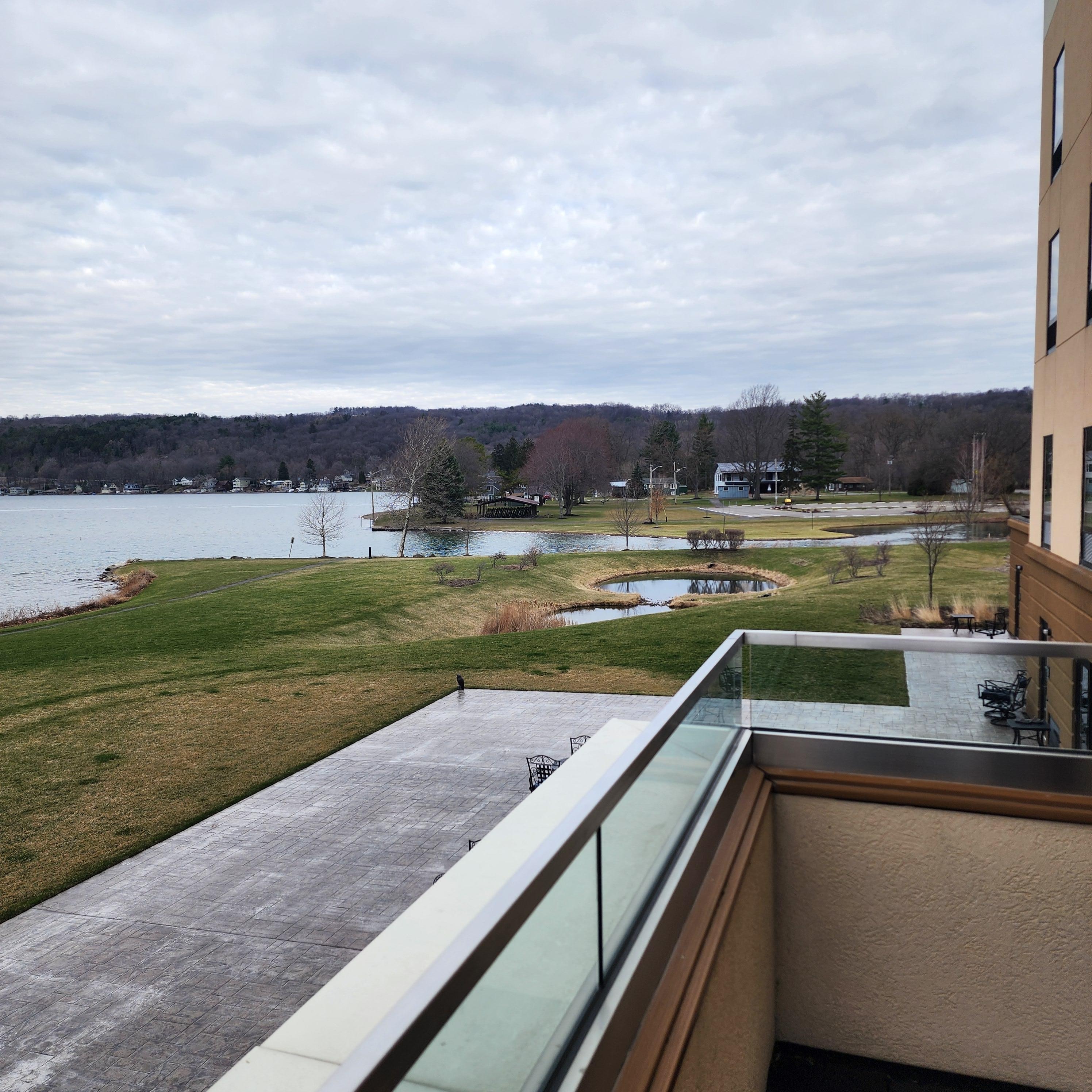 The hotel was on an absolutely beautiful lake. The back patio was not quite ready for spring but it was very nice. Pool was clean and hottub was great. Very friendly staff and comfortable room. Right next to a restaurant but we opted for ice cream in town that was delicious.