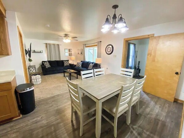 This 1,700 square foot home has plenty of room for the whole group! It has a fully stocked kitchen, so you will have no problems cooking your favorite meals! High speed internet is available, and guests have free access to Netflix, Hulu, and Disney+. There is also board games, a large backyard, and a patio for you to enjoy.