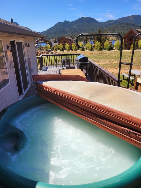 La zona giorno è dotato di un divano letto, poltrona, 32 "TV a schermo piatto, lettore DVD, camino a gas, aria condizionata, set dinette e una cucina completa con uno snack bar. Venite a godere di una vasca idromassaggio privata e il grande ponte avvolgente. Lago Estes è di circa 200 iarde di distanza, con un percorso a piedi che vi guiderà intorno al lago.