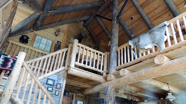 Questa baita di montagna con tronchi completi offre tutti i comfort di una casa moderna, una cucina completamente attrezzata con lavastoviglie, una gamma elettrica e un forno a microonde. Rondella. asciugatrice, barbecue a gas, telefono, WiFi, internet e TV satellitare. Spiacente, nessun servizio di telefonia cellulare.