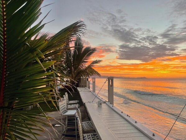 Hawaiian-style home, perfect for a tropical getaway. The 3-bedroom, 1-bath house is fully furnished, recently remodeled, and has AC, 2 queen beds, 1 bunk bed, a cozy living room, kitchen, dishwasher, parking, patio, and is located on the second floor, the third house from the ocean, with private access to the beach. Guests can enjoy a cup of coffee in the morning with Ocean views , Honolulu and Diamond Head!