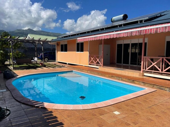 Venite a scoprire l'isola di Tahiti, un'isola misteriosa e mistica piena di storie e leggende. Immergetevi nella sua ricca cultura Maohi, incontrate un popolo unico, condividete e siate generosi e godetevi momenti indimenticabili tra musica, danza e gastronomia! Scoprite i suoi paesaggi mozzafiato attraverso escursioni, nuotate su spiagge di sabbia bianca e nera e gite.Le Fare Vairai, vicino all'aeroporto, è ideale per un soggiorno in famiglia o con gli amici. Situata in un quartiere di Faa'a, offre un ampio giardino recintato con piscina e una grande terrazza per godersi un barbecue di gruppo. La casa di 150 m2 può ospitare 6 adulti in 3 camere da letto con aria condizionata, una King-Size e una Queen-Size per la successiva e 2 bambini nel divano letto del soggiorno. È possibile aggiungere un letto matrimoniale per consentire una capacità di 10 persone. Il soggiorno, aperto sulla cucina, è arredato con un divano angolare trasformabile, una libreria con TV a schermo piatto e un bovindo con vista sulla terrazza e sulla piscina. L'alloggio dispone di una connessione internet wifi. La cucina a pianta aperta è moderna e ben attrezzata per preparare ottimi pasti per tutta la famiglia.La casa dispone di 2 spaziosi bagni con doccia, lavandini e servizi igienici.Infine, gli spazi esterni saranno i vostri preferiti: piscina, terrazza, pergolato e giardino vi aspettano. Apprezzerete particolarmente la piscina per rinfrescarvi dopo le vostre visite o nelle ore più calde della giornata. La pergola vi inviterà a rilassarvi e la terrazza sarà ideale per riunirsi intorno a un buon pasto. Una doccia esterna è stata installata per sciacquarsi dopo aver fatto surf, immersioni o semplicemente dopo una giornata in spiaggia.GLI ELEMENTI ESSENZIALI :* Piscina* Camere con aria condizionata* All'aperto* Accesso internet wifi gratuito* Vicino all'aeroportoVICINO:* Negozio Champion - 700 m* Stazione di servizio - 700 m* Negozio U - 1 Km* Aeroporto di Tahiti Faa'a - 1,7 Km* Parco e spiaggia di Vaira'i - 2,4 Km* Spiaggia PK15 - 10 KmNOTA BENE:Tutte le prenotazioni sono soggette alla piena accettazione dei nostri termini e condizioni di vendita che possono essere visualizzati sul nostro sito web StayInn.Vacations cliccando su termini e condizioni di vendita.Numero di registrazione: 1949DTO-MT