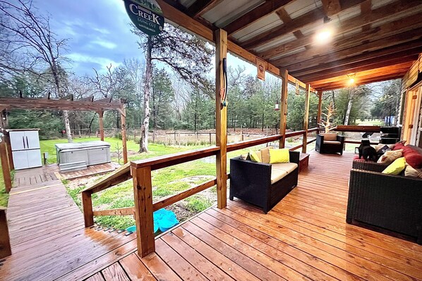 This is a beautiful couple or small family retreat center. The pictures do not do it justice. Beautiful 4 acres to roam, build a fire for smores, and comes with a very large private jacuzzi with powerful massage jets.Eric is a wonderful host--very communicative and responsive. Will bend over backwards to accommodate. Very convenient to I45 as a central Texas gathering point.Would highly recommend!