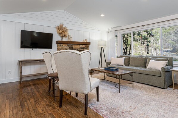 You will feel right at home in this 3 bedroom property, featuring the original hardwood floors. Gather in the living room where there is plenty of comfortable seating. The kitchen has has been updated and fully stocked for you to make all of your favorite recipes. TV's are in each room as well as the living room and with high speed internet, you can stream from any of the smart tv's.