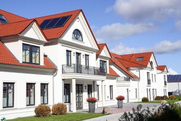 Graziosi appartamenti con arredi eleganti e attrezzature di alta qualità, a soli 600 metri dalla spiaggia. Trascorrete vacanze confortevoli con tanto spazio per svilupparvi liberamente in mezzo alla natura più bella. Una terrazza con sdraio o balcone fa parte di ogni appartamento. Nel complesso troverete anche una grande piscina coperta in comune e una sauna. Fehmarn è la terza isola più grande della Germania e offre 20 spiagge con una lunghezza totale di 78 chilometri, ideali per rilassarsi in una delle regioni più soleggiate della Germania. È possibile raggiungere l'isola dalla terraferma tramite il ponte Fehmarn Sound. La variegata costa offre davvero qualcosa per tutti: dune e laghi a nord, coste scoscese e scoscese a est, spiagge sabbiose a sud e tramonti mozzafiato a ovest. Nell'entroterra troverete paesaggi incantevoli e riserve naturali che vale la pena esplorare Caratteristiche principali inclusi: Tutti i costi energetici basati sui consumi, lenzuola, asciugamani, pulizia finale WLAN Attività nelle vicinanze: Fehmarn è ampiamente conosciuta come la mecca dei surfisti. Ma non solo i windsurfisti o i kitesurfer qui hanno i loro soldi: vela, stand-up paddle, immersioni e pesca assicurano ore attive in termini di sport acquatici. Puoi fare un piccolo viaggio nel tempo nel centro storico di Burg. Gli eventi si svolgono regolarmente sulla piazza del mercato e c'è anche un mercato settimanale il mercoledì. Il parco giochi al coperto Jumpy Doo è un'esperienza emozionante per i tuoi bambini, divertimento e varietà sono assicurati! Se hai voglia di un piccolo duello, visita la pista di go-kart o trascorri una giornata sul campo da golf avventura. L'azione promette Slio Climbing, la struttura di arrampicata protetta con la corda più alta d'Europa.