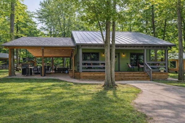 This cottage is designed with accessibility in mind and includes a ramp entry and a primary bathroom with a zero-entry shower.