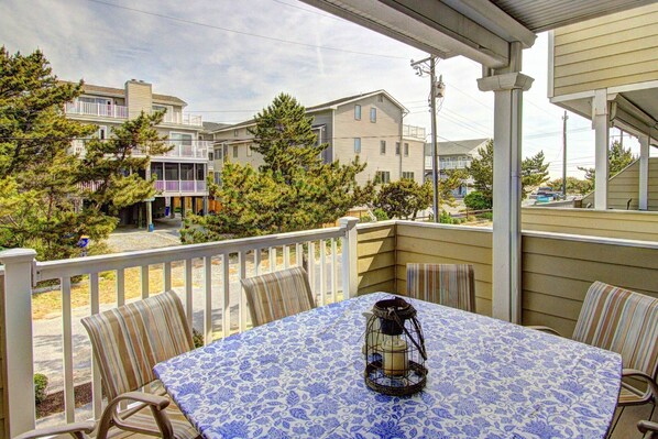 Once you arrive and park out of the sun under this unit you can walk or ride your bike to wherever you wish to be in Fenwick. Steps away at the beach there are lifeguards every 1.5 blocks. After a day of fun at the beach you can rinse off in the home’s outdoor shower.
