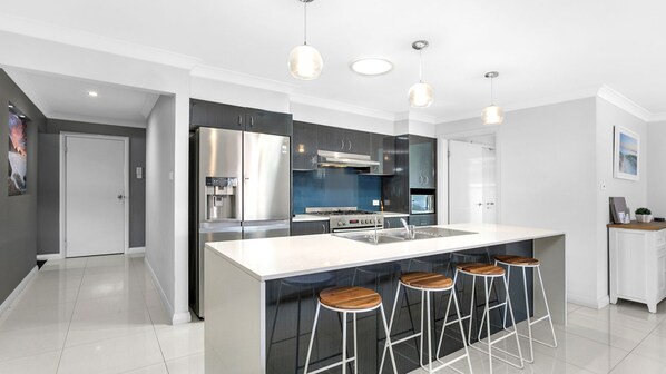 Welcome to your dream holiday retreat at Shoreline Drive in the picturesque suburb of Fingal Bay! This stunning single-story house is a haven for relaxation and family fun. Boasting five beautifully furnished bedrooms, including en-suites, walk-in robes, and built-in robes, it comfortably accommodates up to 10 guests. The open-plan living spaces are adorned with modern furnishings, and the well-equipped kitchen with gas appliances is a culinary delight. You can unwind in the spacious lounge and cinema rooms, each featuring a Smart TV and a sound bar for your entertainment.