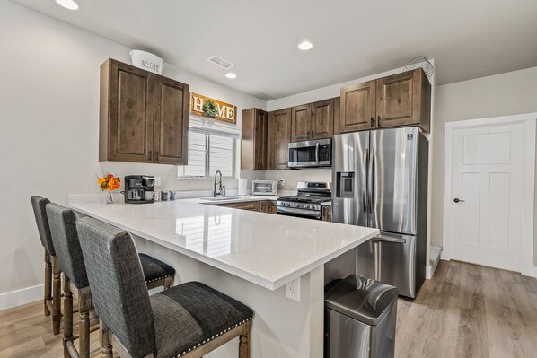 Driveway is shared with 3 other homes, as pictured & back up cautiously, no garage remote (punch code in to get in), if power to garage or door lock goes out you will not get in as there is no keys around, spacious garage fits my truck, nice plugin air freshener smell when you enter home, as you get comfy I noticed a lot of white dog hair over all the furniture and rugs, cleaner vacuumed upstairs couch but not under tray or pillows, first night main BR bed was very itchy like it had dust mites, after uncomfortable first nt, washed all bedding the next day along with couch blankets, no vacuum so bought large lint roller to pick up dog hair off upstairs couch, given condition of home had to wash towels for piece of mind, back yard had dog poop and vomit like splatter I had to pick up so it would not be stepped on during rainy weekend and dog would not get into the sickly substance, communication with contact was not quick and took time to receive a response on TV remote which he initially didn’t know where it was and the uncleaned areas of the property. Unfortunately no solution or offers were presented for unexpected stay issues. The home is definitely nice looking just lacks care and follow-up, upstairs temp is cooler than downstairs if that is a concern for anyone. No clean sponges for dishes, just used dishwasher, no toaster for bread just toaster oven that did not look clean. Kitchen seats were not clean looking picked lesser of all and used just that one.