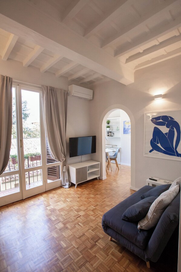Centro storico. Via degli Alfani, a pochi passi dal David e dal Duomo, una strada molto centrale con bar, ristoranti e negozi. Appartamento di 55mq in un palazzo storico, 2° piano senza ascensore, 2 camere matrimoniale, un salotto con divano letto, 1 bagno.