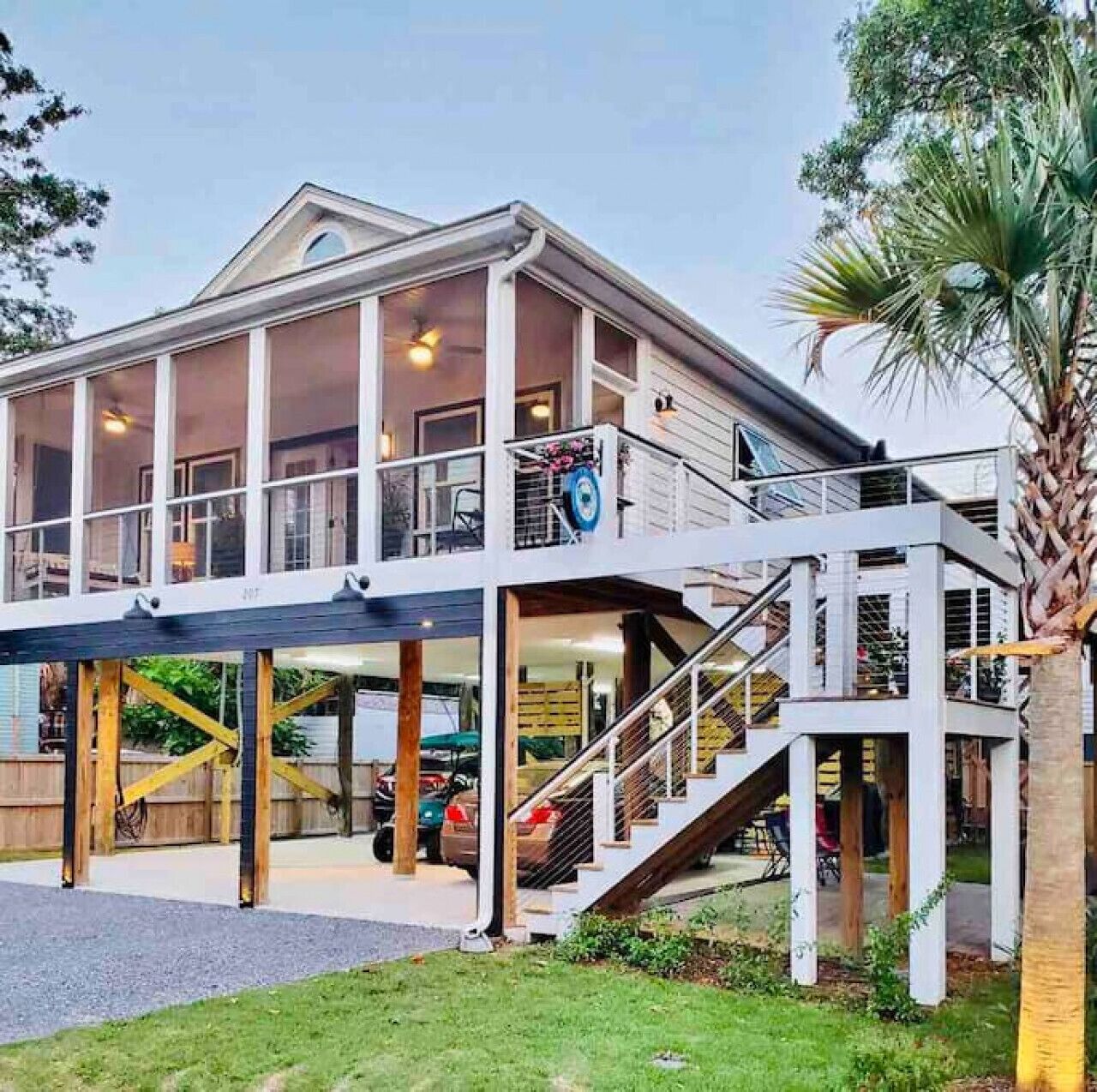 We loved the screen porch and the amount of seating. Access to restaurants was within walking distance. Short walk to beach. Excellent bedroom and kitchen layout. What needs improvement: hardwood floors need refinishing and French door needs replacement. Public parking next to house gets very busy and loud on weekends.