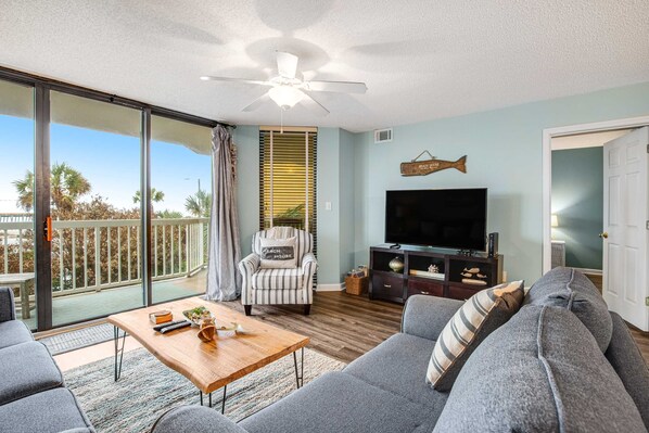 We loved this condo!! It was right on the beach. I could have stood in the parking garage and just stared at the ocean--it was breathtaking. The condo was clean, fresh, neatly decorated. Plenty of amenities, beds were comfortable. Will definitely return!