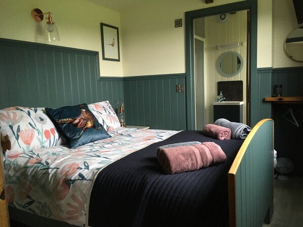We thoroughly enjoyed our 2-night stay at the Shepherd's Retreat. It's in a very green and quiet location, set back off a country road that seems to have little traffic - we never noticed any traffic noise. Our cottage overlooked a small green space with a wild area and apple trees. Farmland over on one side, and on the other side (separated by a thick hedge) was the village sports field. The sports field is a large green space and was ideal for taking our dog for a good walk. We met a lot of friendly dogs (and owners) there. From the cottage we could occasionally hear the gentle thwack of cricket being played and the muffled sounds of boys playing football, but these added to the sense of tranquility. The cottage itself is cosy and comfortable. There is a small kitchen area reasonably well equipped (including an unexpected coffee machine, which we appreciated). We had decided to eat out during our stay, so we only used it for making breakfast. There's little working space, so you'd have to be very organised to use it for any substantial cooking. Two comfortable leather chairs face a wood-burning stove that puts out a tremendous heat. The bed was very comfortable and we slept really well. There's a small bathroom wth a good shower. Wifi was included, although the signal was weak in the bedroom. I don't think either of us have anything negative to say about our stay here and we would happily return.