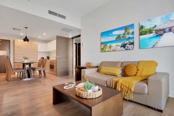 BRAND NEW Apartment with all the comfort that you need to feel at home, a PERFECT STAYCATION for family and friends. Our well-designed bedrooms mix natural wood and stone with organic textures, along with state-of-the-art technology.