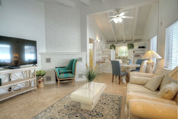Step into the fully stocked kitchen, complete with a stove, oven, refrigerator, grill, microwave, dishwasher, coffee maker, kettle, blender, and toaster. Gather around the dining table and savor delicious home-cooked meals. When it's time to unwind, relax in the comfortable living room.