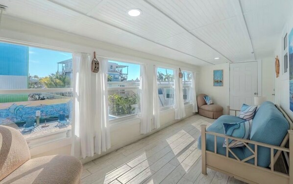 Ci sono 2 unità disponibili in questa posizione (affittate separatamente, se sei interessato ad affittare l'intera casa, ti preghiamo di informarti sui prezzi speciali!) Questo elenco è per l'unità al 2 ° piano, "Bonita Sol", che dispone di un ampio piano aperto con accesso diretto alla piscina e cortile recintato. Questa unità come quella inferiore è stata completamente rinnovata con nuovi pavimenti in piastrelle di ceramica e arredata in modo confortevole. La cucina ha nuovi elettrodomestici e accessori e viene fornita con tutto il necessario per preparare i pasti a casa o in piscina. Ogni unità è dotata di una macchina da caffè americano e di un Keurig, basta portare il proprio caffè. Là. s spazio da pranzo disponibile dentro e fuori. Ci sono molte sedie intorno alla piscina per far divertire te, la tua famiglia e i tuoi amici! C'è la connessione wi-fi super veloce (150 Mbps), c'è una TV da 32 pollici nel soggiorno e in ogni camera da letto dotata di Direct TV Now, che offre tutti i canali nazionali e locali, HBO, Netflix e Amazon Prime video. Ogni camera offre 1 letto matrimoniale e spazio per riporre vestiti e cose. C'è un divano letto nel soggiorno e un futon doppio nella veranda. Hai anche la tua lavanderia privata con uso gratuito di lavatrice e asciugatrice.