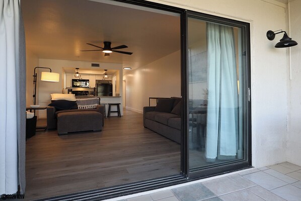 This beautiful, newly furnished and updated 1 Bedroom/2 Bath Island Vacation Condo is fully air-conditioned, bright and airy with wood vinyl planking floors throughout and a lovely screened in lanai with water views. Picture yourself relaxing out on your lanai watching the boats go by on their way out to the Gulf, taking in the sea breezes dining al fresco or reading a book. The gorgeous, remodeled, fully equipped Kitchen with new appliances includes that oh-so-important dishwasher. Clean and modern design features a Breakfast Bar with granite countertop providing dining for 4. Living Room has lots of comfortable seating with a large flat screen TV. There's a sleeper sofa and the loveseat is also a sleeper, providing sleeping accommodations for 3 guests. The Bedroom En Suite has a comfortable King sized bed. The newly remodeled Master Bath has a Walk In Shower. There's a separate FABULOUS newly remodeled Full Bath with a Walk In Shower for Guests located in the hallway between the Living Room and the Bedroom. Cozy little island condo for 5!