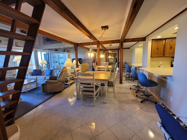 This inviting condo offers a fully furnished retreat, poised for your upcoming vacation. Boasting two bedrooms and two baths, it includes a charming loft, unique to this second-story unit. Enjoy serene pond views, perfect for savoring your morning coffee in tranquility. The master bedroom presents a spacious King Size bed accompanied by a TV for added comfort. In the second bedroom, you'll find two cozy Twin Beds. The living room is thoughtfully appointed with ample seating and another TV, ensuring entertainment and relaxation. Additionally, for accommodating occasional guests, the loft offers a comfortable bed and two couches. Stay connected with WIFI throughout the condo. As part of the Ocean Village association, you'll have access to a range of amenities, with the beach entry point conveniently located on the property. Your ideal vacation getaway awaits – come and experience it with us!