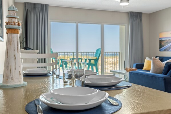 * Private balcony with sweeping Gulf, dune, and pool views