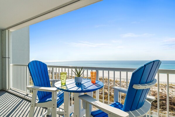 Rilassati dal tuo stress quotidiano nella tua vacanza in spiaggia in questo affascinante 2 camere da letto, 2 bagni condominio. Crogiolatevi nella splendida vista al 4 ° piano della luce del sole che danza sulle acque color smeraldo del Golfo del Messico. Questa unità può ospitare comodamente 6 persone con 2 letti king size e 1 divano letto matrimoniale. Completamente arredato, cucina completamente attrezzata, e tutti i pavimenti in piastrelle rendono questa unità senza precedenti. È una gioia cucinare per tutta la famiglia in cucina con nuovi elettrodomestici in acciaio inossidabile con vista sul Golfo. La parte migliore è che quando sei pronto per andare in spiaggia, semplicemente scendi le scale o prendi l'ascensore, e tu sei lì!