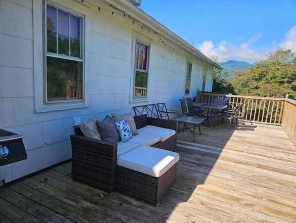Mountain Views: Gaze upon the stunning vistas of rolling mountains right from your windows and the spacious deck. Enjoy your morning coffee with a backdrop that seems straight out of a postcard.