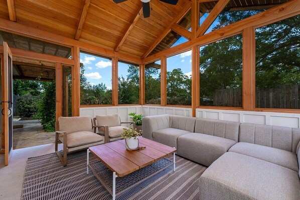 One of our very favorite places to stay in Fredericksburg! It was super clean, comfortable, cozy and perfect for our stay. You can tell every detail was thought out and the furniture, appliances, everything was super nice. Close enough to walk to Main Street, but far enough from there to enjoy a peaceful evening sitting on the front porch or hanging out in the sunroom. We will be back!