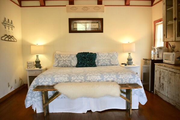 Il Garden Cottage è situato al di sotto di una grande quercia con un portico da giardino, come l'ingresso perfetto in questa piccola baita caratteristica. Questa piccola pensione speciale è una camera con soffitti alti e un bagno spazioso. Il punto focale è il letto king-size. Lo spazioso bagno è dotato di vasca con piedi artiglio con doccia. Goditi la tua mattinata o la tua serata sul dondolo perfetto per goderti una bella serata in Texas.